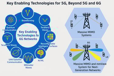 Our research focuses on advancing the core technologies that will power Beyond 5G (B5G) and 6G networks, addressing critical goals such as ultra-high data rates, low latency, high reliability, energy efficiency, and enhanced security.